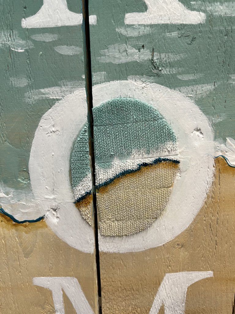 Als het bord klaar is, is het klittenband meegeverfd, blijft het bord mat en staat hij in de was en kan dus ook prima buiten blijven staan